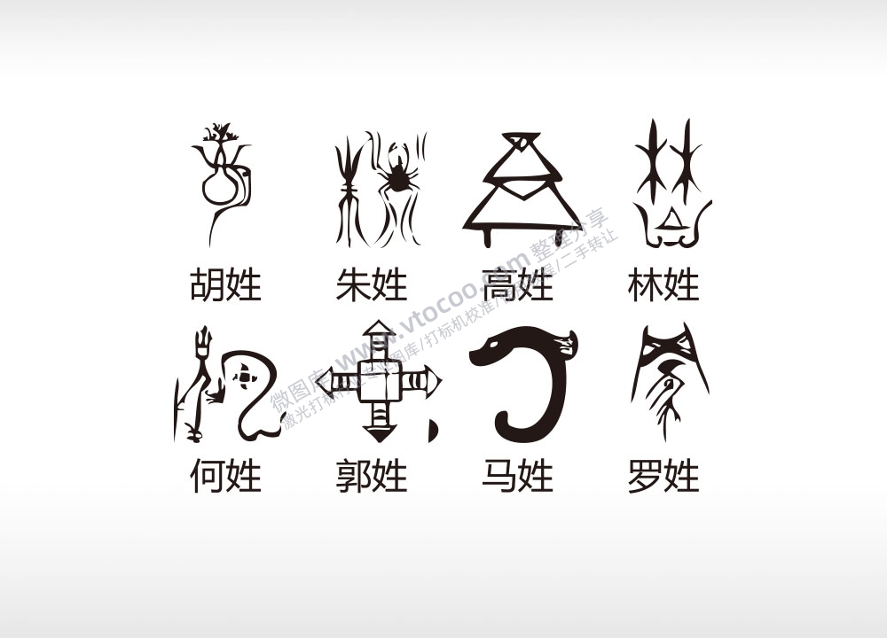 百家姓氏图腾胡朱高林何郭马罗AI8.0格式激光打标文件通用矢量图