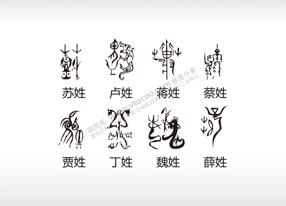 百家姓氏图腾苏卢蒋蔡贾丁魏薛AI8.0格式激光打标文件通用矢量图